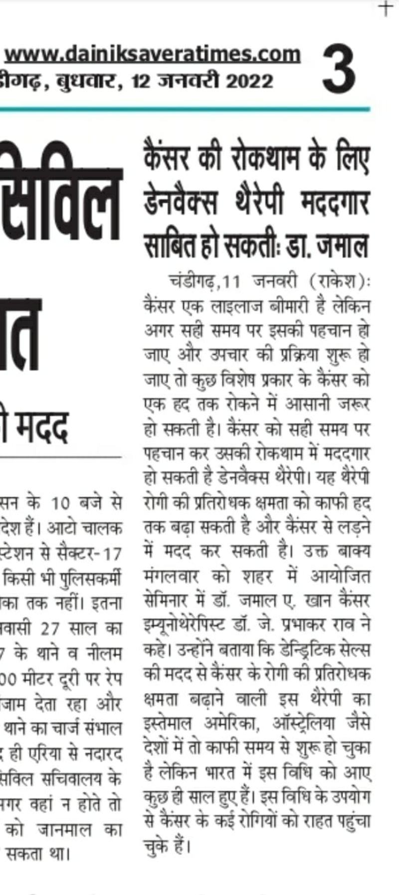 Dr Jamal A. Khan, MBBS, MD (Medical Microbiology), was a professor in Aligarh Muslim university, teaching Immunology when he developed interest in the power of immune system, and ways to harness it. He started his pre-clinical work in 1997, and began his study using animal models. In 2004, he moved to Delhi, set up his lab and began clinical work, with required permissions. For 19 years he has been doing exclusive dendritic cell-based cancer immunotherapy, in thousands of patients from India and outside.